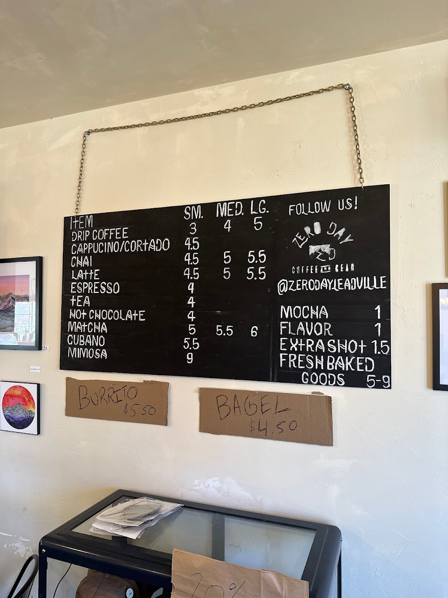 Zero Day Coffee Menu